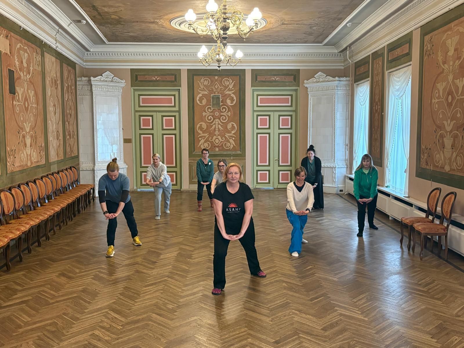 Otin yhteyttä HõbeKOBAR-hankkeen vetäjään Kristi Kuusmik-Oravaan ja kerroin asahista ja että voisin tulla esittelemään lajia Pärnuun. Tuumasta toimeen: tilaisuus toteutettiin ystävänpäivänä 14.2. Tarton yliopiston Pärnun collegen yhteydessä toimivan Pärnun seudun kehittämiskeskuksen (Pärnumaa Arenduskeskus) tiloissa. Paikalla oli seitsemän henkilöä: Kristin lisäksi muun muassa joogan ja pilateksen ohjaaja, sauvakävelyretkiä järjestävä ohjaaja, kehitysvammaisten kanssa työskentelevä, nuorten liikuntaharrastusten ohjaaja. – Siis juuri oikea kohderyhmä, mistä olen todella kiitollinen.