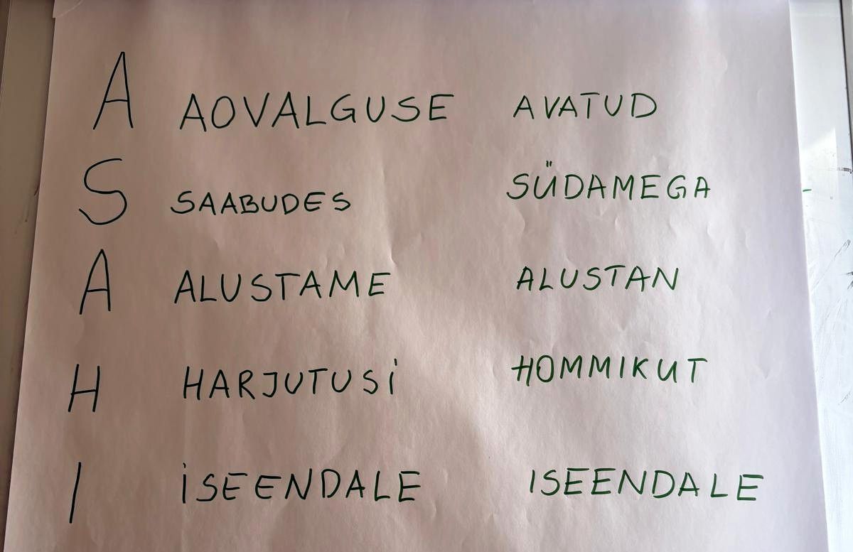 Tallinnassa järjestettyyn ohjaajakoulutukseen osallistui Suomesta yksi B-ohjaajakoulutettava sekä Virosta viisi C-ohjaajaksi kouluttautuvaa; kaksi heistä saivat kouluttautumiskimmokkeen kuukautta aiemmin Pärnussa pitämästäni Asahi-peruskurssista. Tallinnassa kouluttajina toimivat Asahi Nordicin pääkouluttaja Maarit Lintukorpi ja kouluttajaksi opiskeleva Ülle Heiskanen. Minä pääsin mukaan verestämään asahi-sarjojen osaamistani, mutta yhtä lailla kertaamaan vironkielistä asahi-sanastoa. – Tätä kirjoittaessani koulutuksessa C-lisenssin saaneista yhdellä on viikkotunti kotikaupungissaan Pärnussa, toisella tapahtumia Keski-Viron kaupungeissa Türissa ja Paidessa. Myös Tallinnasta osallistuneet ovat aktiivisia: yksi järjestää Asahi tutuksi -tapahtumia omassa kaupunginosassaan, kaksi muuta omalla työpaikallaan. – Kiitos Üllelle Messenger-viestiryhmän perustamisesta ja kaikille siihen kuuluville aktiivisuudesta. Kuten muutoinkin, myös tässä vertaistuki ja ideoiden vaihtaminen tuottavat hedelmää.